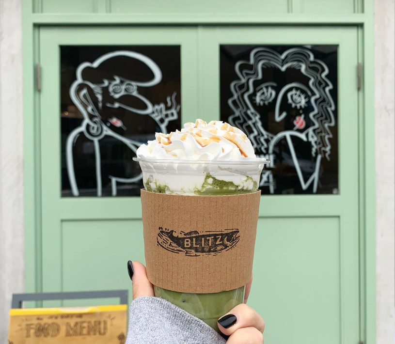 ペパーミントグリーンのドアとガラス窓に描かれた絵が目を引くカフェ、BLITZ(ブリッツ)。オーナーの長屋は、中2の時に同級生の兄の影響でインディーズパンクにハマり、そこから音楽、ファッションに興味を持ち始めた。中学卒業後は設計図の印刷屋に勤めるも1年で辞め、プー太郎メインのフリーター生活をしばしの間送る。その後、当時岐阜では珍しかったヴィンテージの古着屋で働き、2店舗目の店長を3年ほど務めた。やがて建築関係の職人として板金会社で3年勤めたのち、ある出会いを通してアメリカに頻繁に行くことになる。その時の経験が今の仕事につながっていると言う。