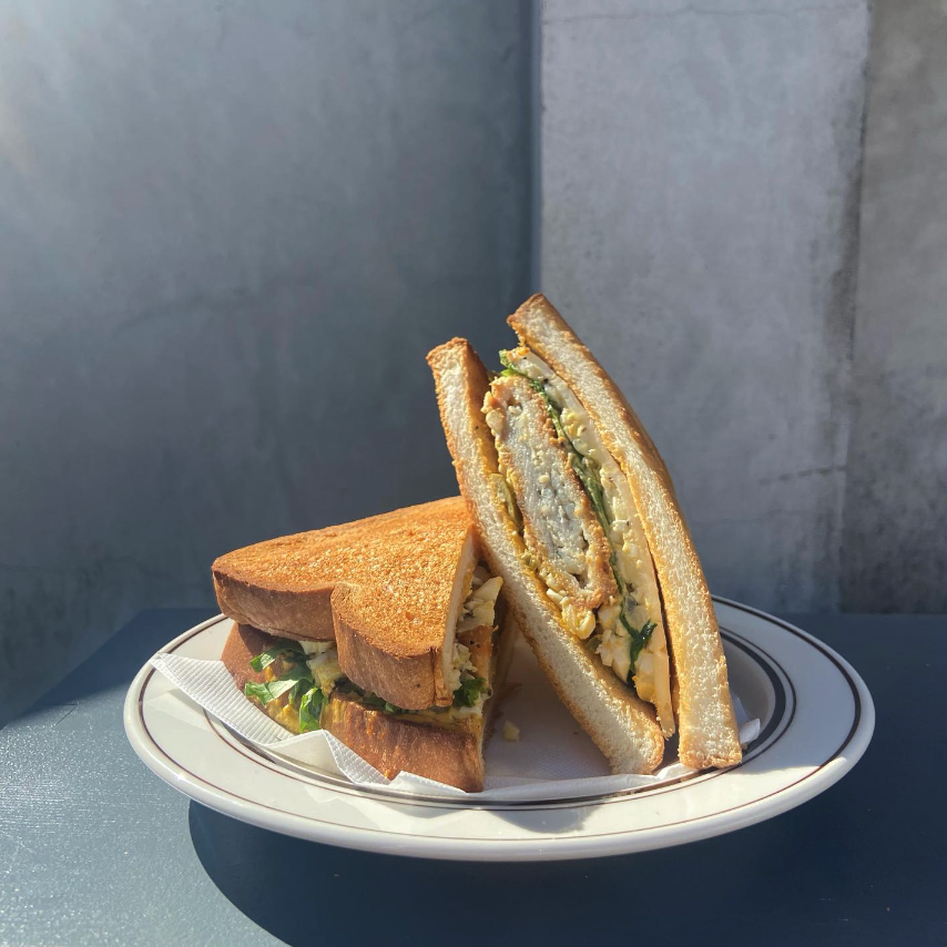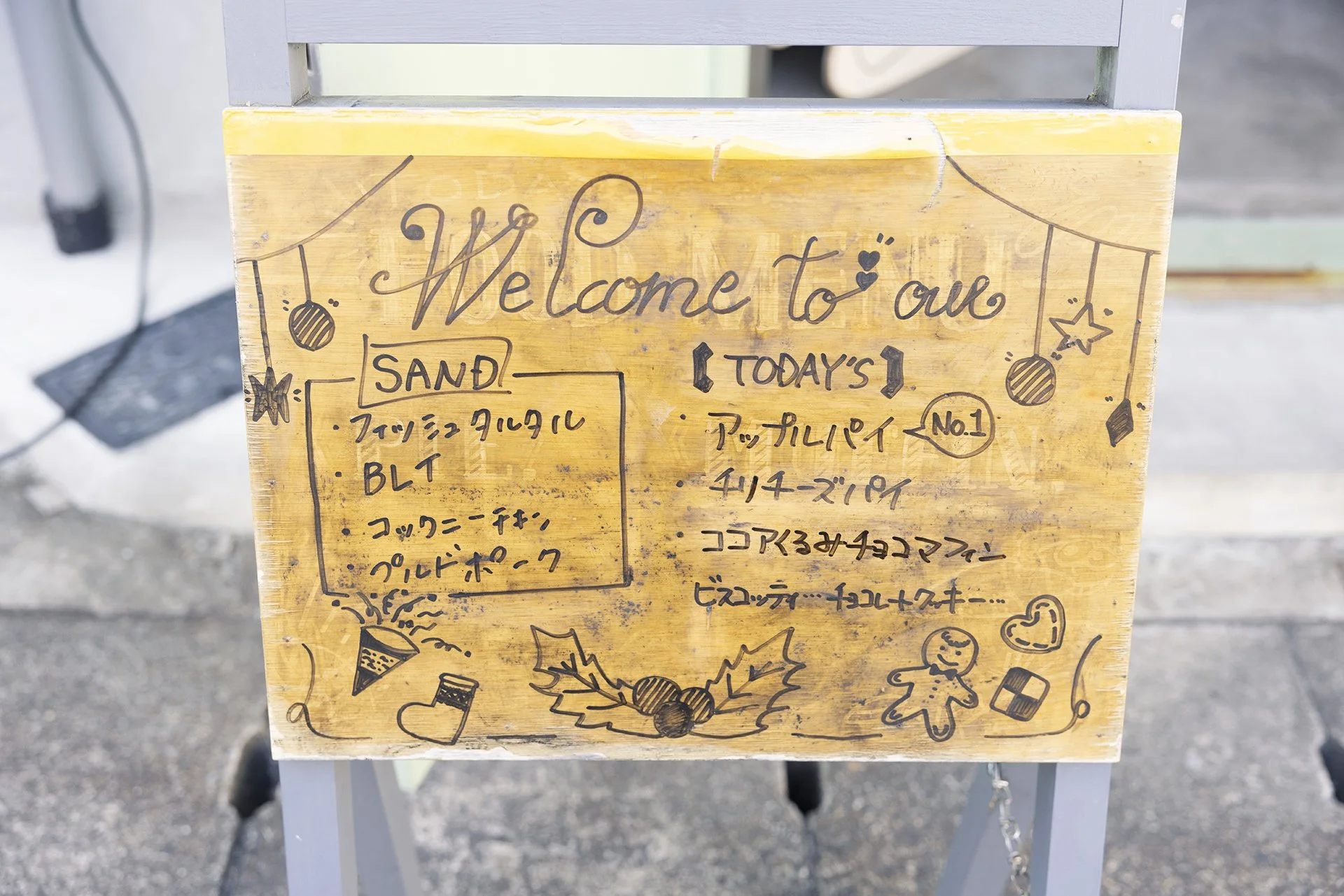 カフェラテとサンドウィッチやパイなど。毎日店で焼いて作ってます。サンドイッチは始めたばかりですけど、フィッシュサンドとスパイスチキンサンドが人気。パイはアップルパイが人気ですね。