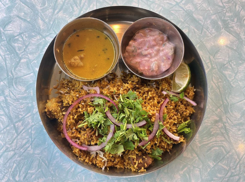 オープン当初から出しているケララチキンカレーと、クックスチキンカレーです。ケララチキンカレーは荒削りのココナッツが効いていて、クックスチキンカレーは、うちのチーフマネジャー兼シェフのBakeがオリジナルのミックススパイスパウダーを作ろうって提案してくれて、いい感じに仕上がったんで、これ1本で作れるカレーを考えようってことで作りました。あとはビリヤニも人気です。ビリヤニって結構手間がかかる割には利益にならないので、工程をはしょって作るお店が多い中、うちはきちっと忠実に作ってるつもりです。インド料理マニアみたいなお客さんは結構喜んでくれます。