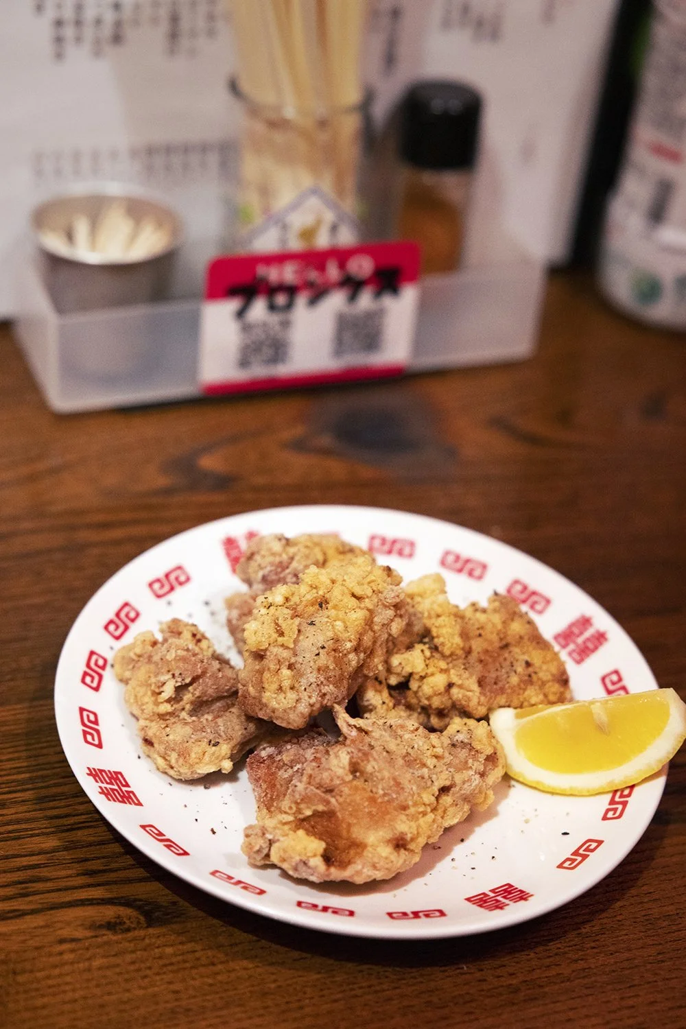 鮮魚盛り合わせ、鶏レバーごま油、鶏の唐揚げ、街中華のチャーハンです。鮮魚は毎日市場で直買したもの、鶏レバーは朝絞めの新鮮な信玄どりを毎日仕入れて作ってます。唐揚げは自分の好きな味付けをしてるだけでそんなに拘ってはいなかったんですけど、お客さんの間で上手いって勝手に評判が一人歩きして(笑)。チャーハンは友達がやってる中華屋でレシピを覚えて、作ってみたら結構再現できたみたいな感じですが、これも人気ですね。