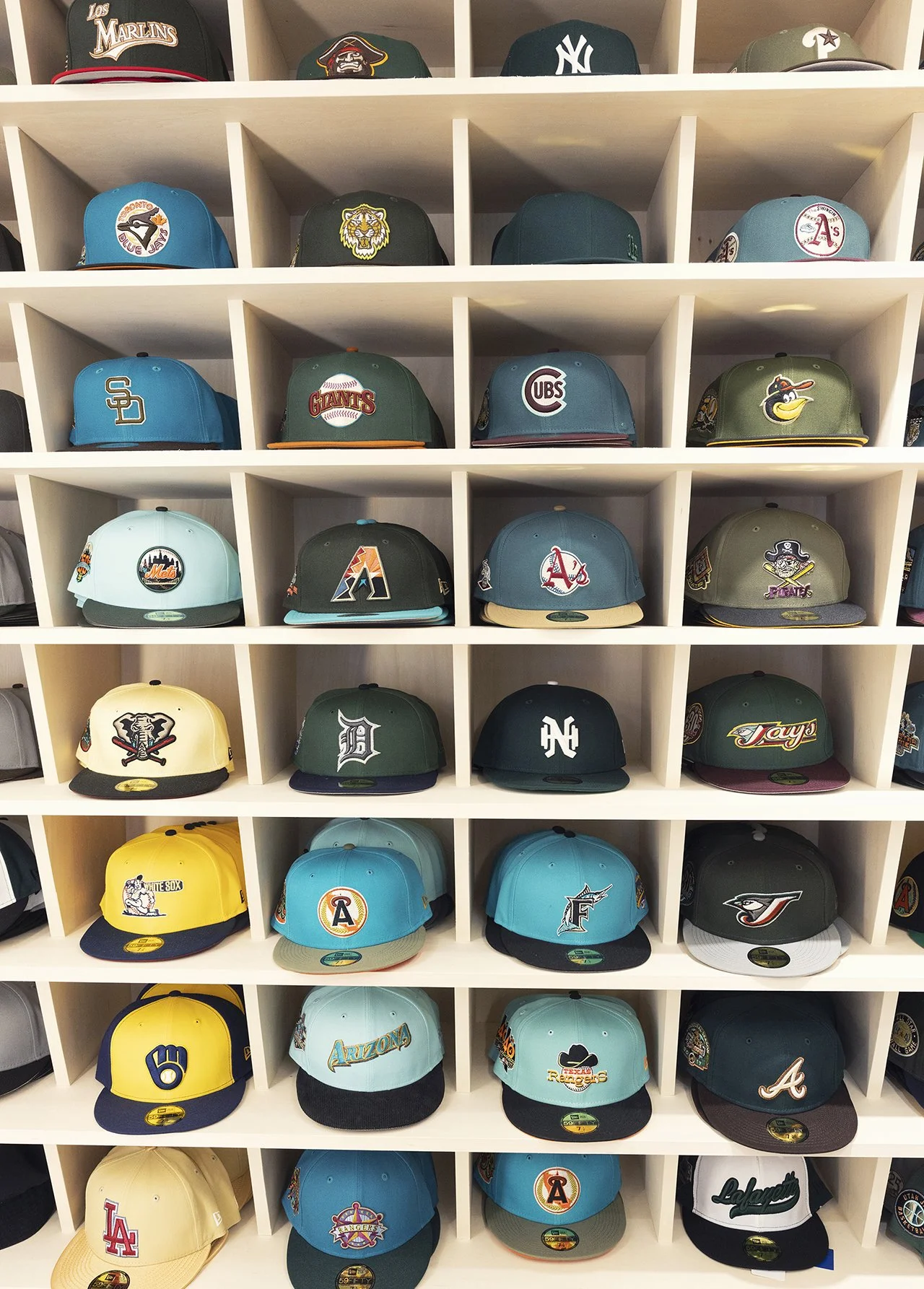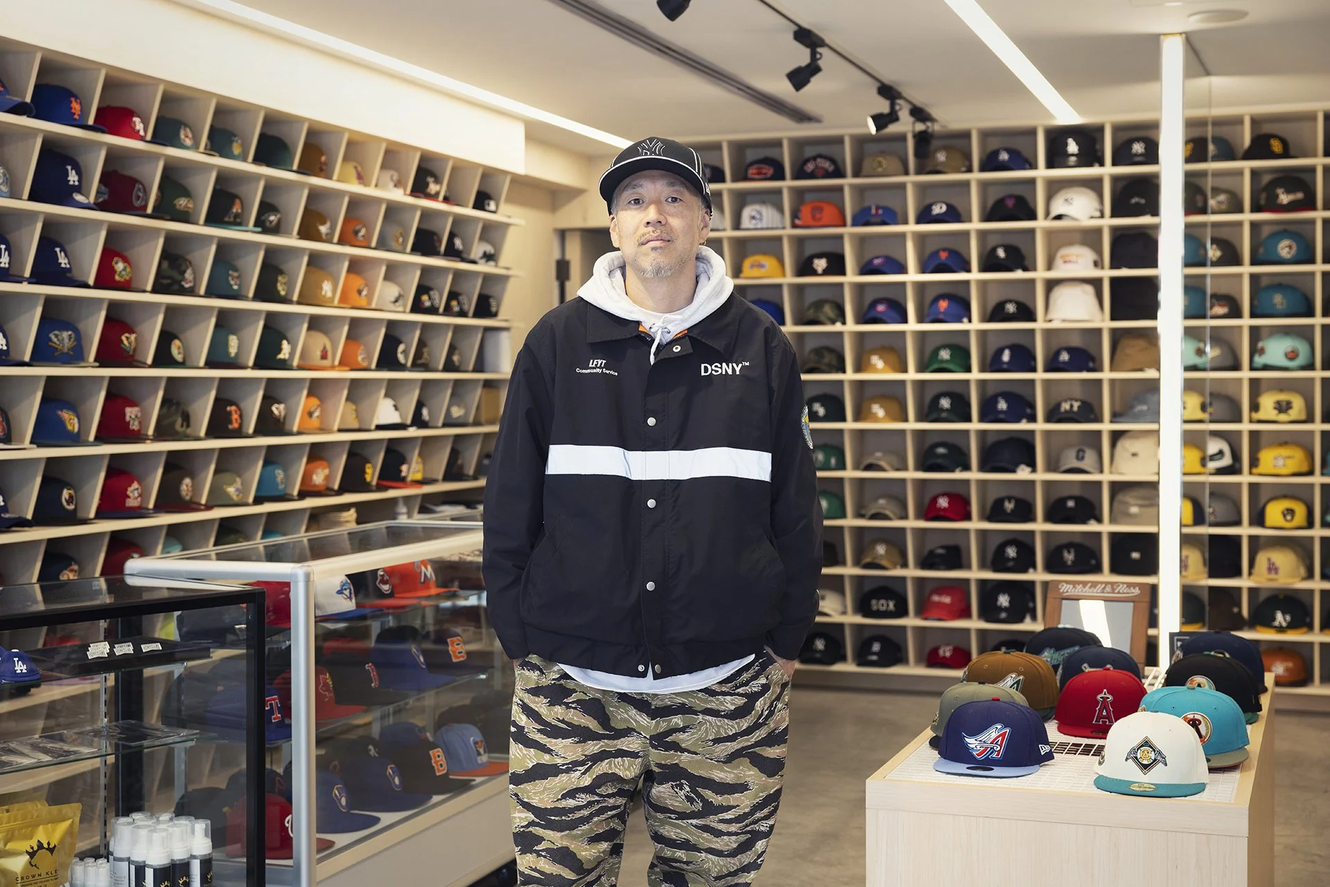 Lafayetteでは昔からずっとNEW ERAを扱って、別注モデルも出し続けてたりしたんですけど、ここ 1、2年は別注を出すたびに店に100人くらいの行列ができたり、抽選に1000人来るような勢いだったんです。アメリカでNEW ERAの人気が再燃した影響ですね。でもLafayetteは帽子専門店にはできないんで、やるならニューヨークのハーレムとかクイーンズにあるようなスタイルでやりたいと思って、昨年思い立って着手しました。