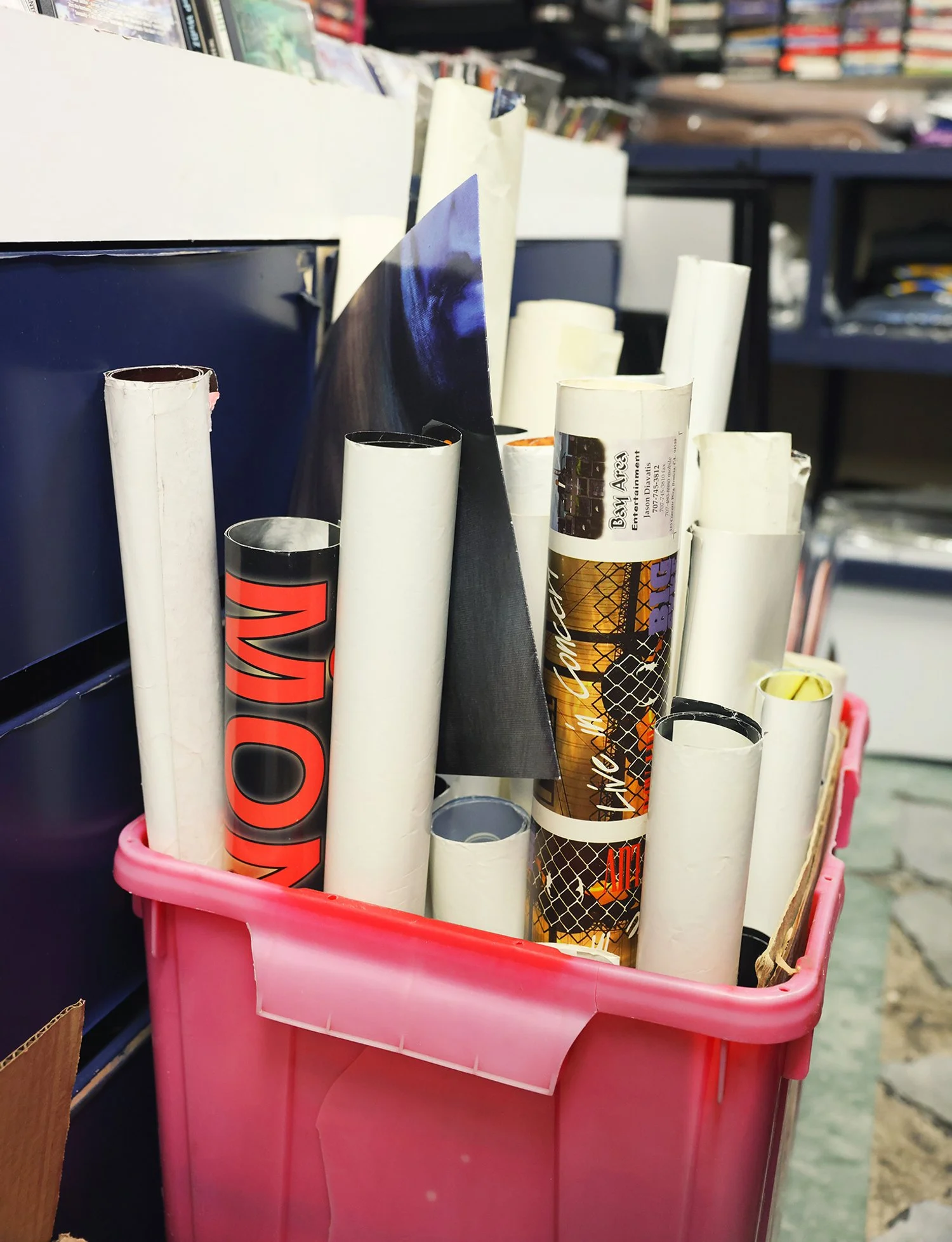 それともう一つ、これまで向こうで自分がゲットしてきたフライヤーやステッカー、ポスターとかって、自分からすると文化遺産レベルのものだと思ってるんです。もちろん素晴らしい出来のA級のアートとかもかっこいいけど、俺はそれよりB、C、D級とかの方が共感できるところがあって。そういうのを作る人たちって、物の売り方を知らないから売ろうともしてなかったり、作品には人間ぽさが伝わる粗さがあったりで、めちゃくちゃかっこいいと思うんです。アメリカに残ってるそういうものを全部買いたいくらい。それで例えば小田原の山辺りで巨大な倉庫を借りて、田舎バージョンのポップアップをやるみたいな、そんなことができたらいいなと思ってます。