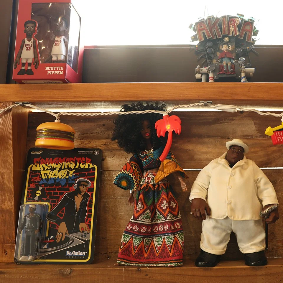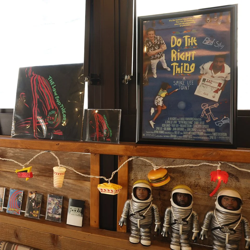 自分の青春の90年代カルチャーを詰め込んだ部屋です。あとは、この辺りがベッドタウンなので、年齢性別問わずいろんな人がゆっくりと過ごせる癒しの空間になるようにインテリアを考えました。自分のできることって、等身大の自分を随時提供しつつ、皆さんと共有することだと思ってます。なので時代を共有するというか、そんな空間にしたいです。