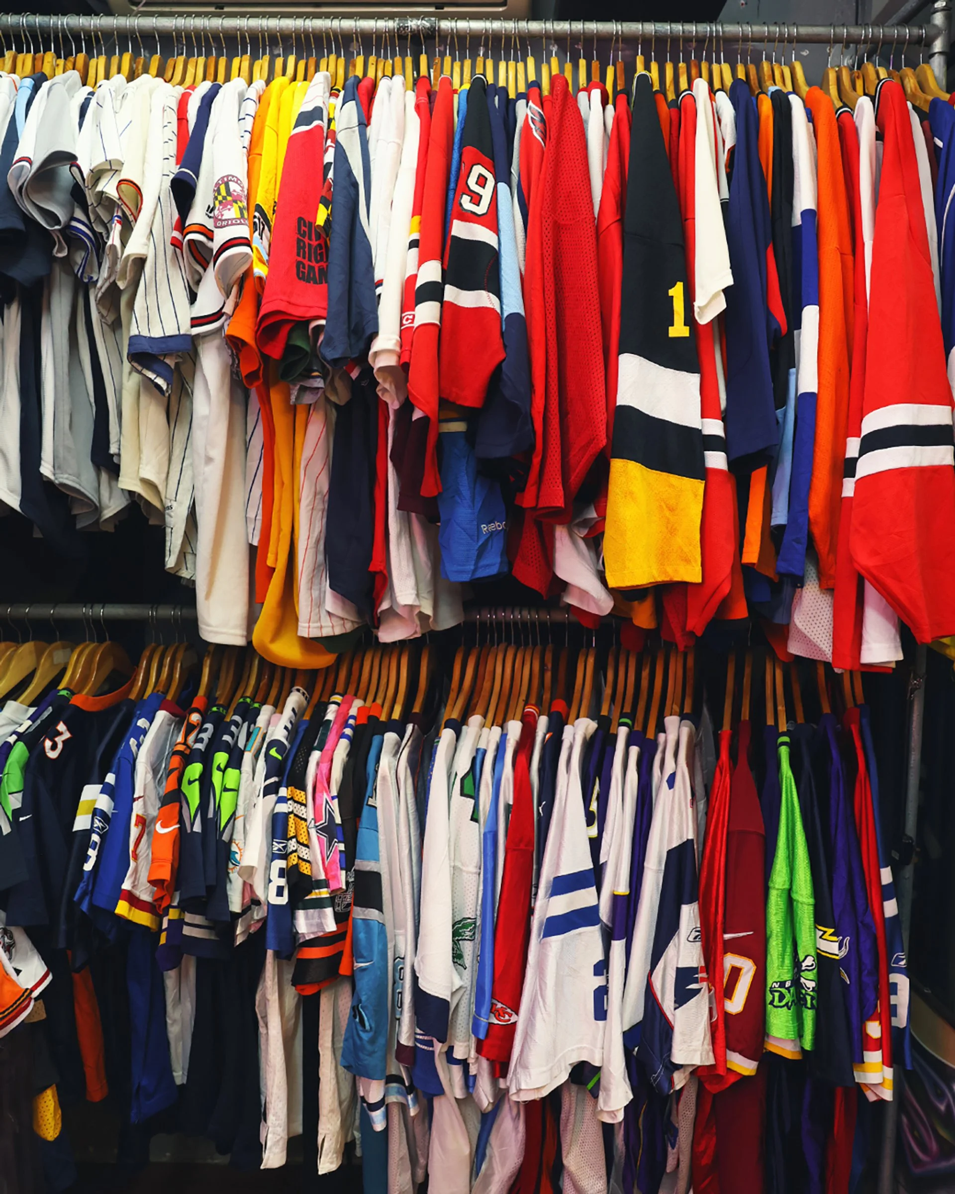 僕の店は、2000年代に人気だったFUBUやPhat Farm、Cross Colours、Rocawear、Karl Kaniなどのブランドの服や、アメリカンフットボールやホッケーのジャージを扱っていることで知られている。ご存知のとおり、これらは当時ヒップホップアーティストの間で人気のファッションアイテムだったけど、今は手に入れるのが難しい。