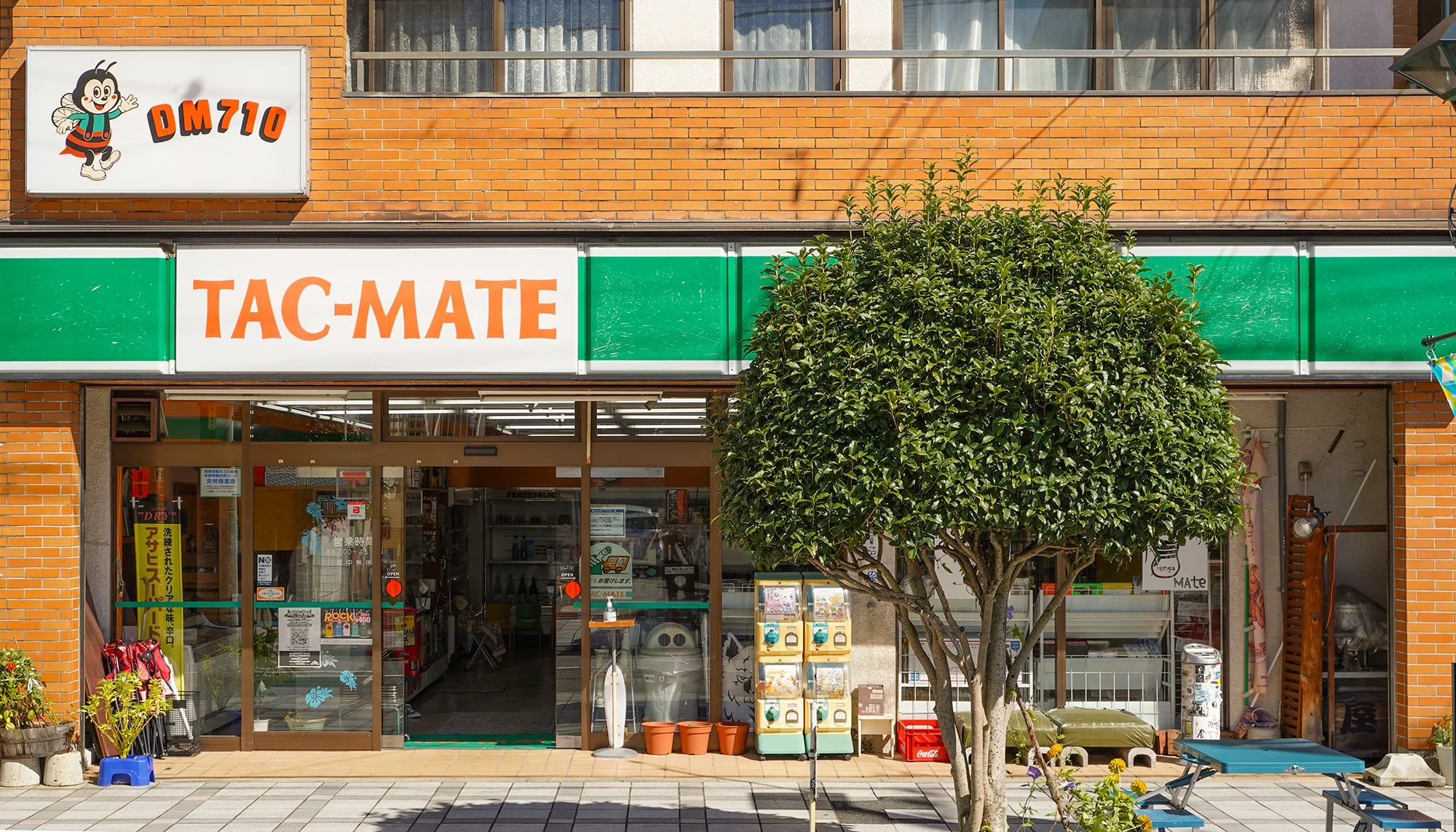 岡崎の地元の人々に愛されるコンビニ、「DM710 / TAC-MATE」。その歴史は80年代に遡る。岡崎初のコンビニエンスストア「Cocostore」として1981年に誕生し、その後は時代の流れで「TAC-MATE」という名に変わり、昭和の激動の時代を走り抜けた。ちなみに「TAC-MATE」の「TAC」は宅配、「MATE」は仲間の意味。“なんでもお届けする、地域に根差す”営業スタイルだったが、2020年にサイトウレオ率いる新たなメンバーが加わり、現在は地元飲食店へのドリンクの卸しのみを対応。「DM710 / TAC-MATE」として、新たなスタイルでコンビニからヒップホップ・ストリートカルチャーを届けている。