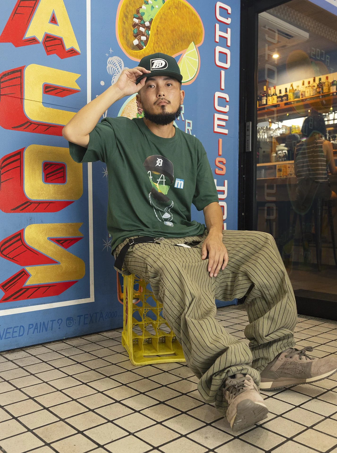 1年前くらいにできた店で、音楽仲間の店って感じすね。「ガッペレス」のMVを撮った場所で、ここのボスのラスティーはガッペレスのビートを作ったんです。ちなみにここではいつもフィッシュタコスを食べます。