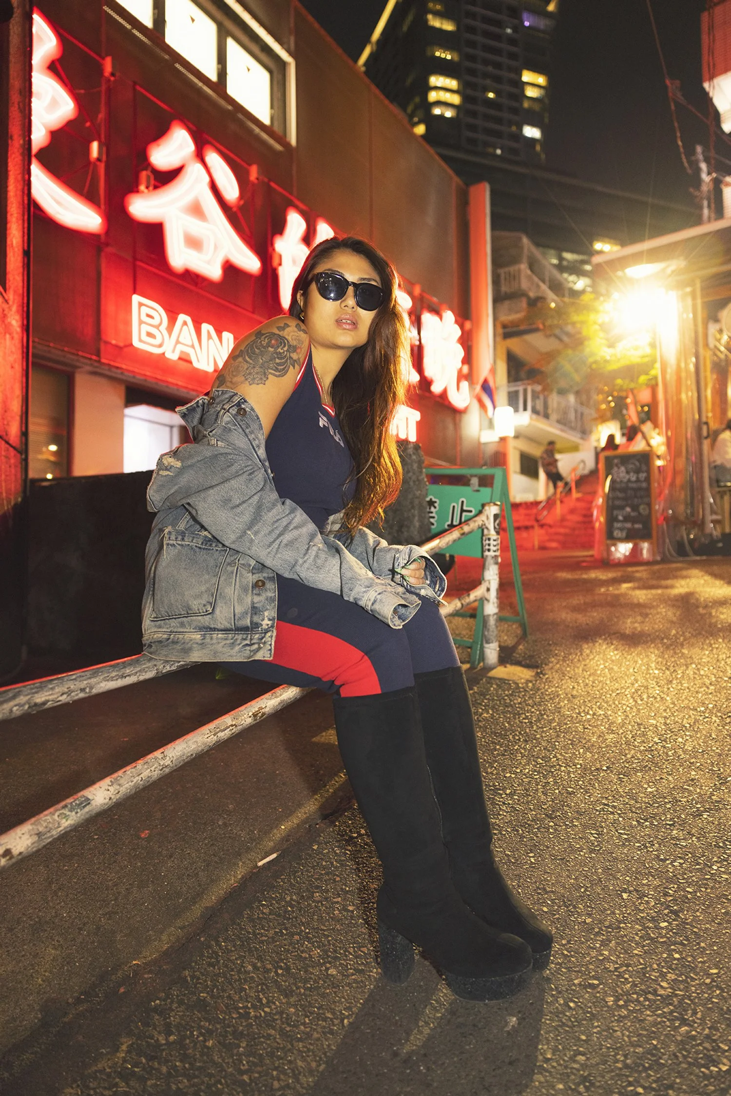 カイリー(Kylie Jenner)、カーディ、ミーガン(Megan Fox)とか、海外のフィーメールラッパーやセレブのファッションが好きです。インスタやミュージックビデオを見て参考にしてますね。でも、私がそういう格好をしてインスタとかに載せると、日本の人にびっくりされるんです。この前も、上半身裸にジャケットを着ていたら、「中、どうなってんの?」って(笑)。