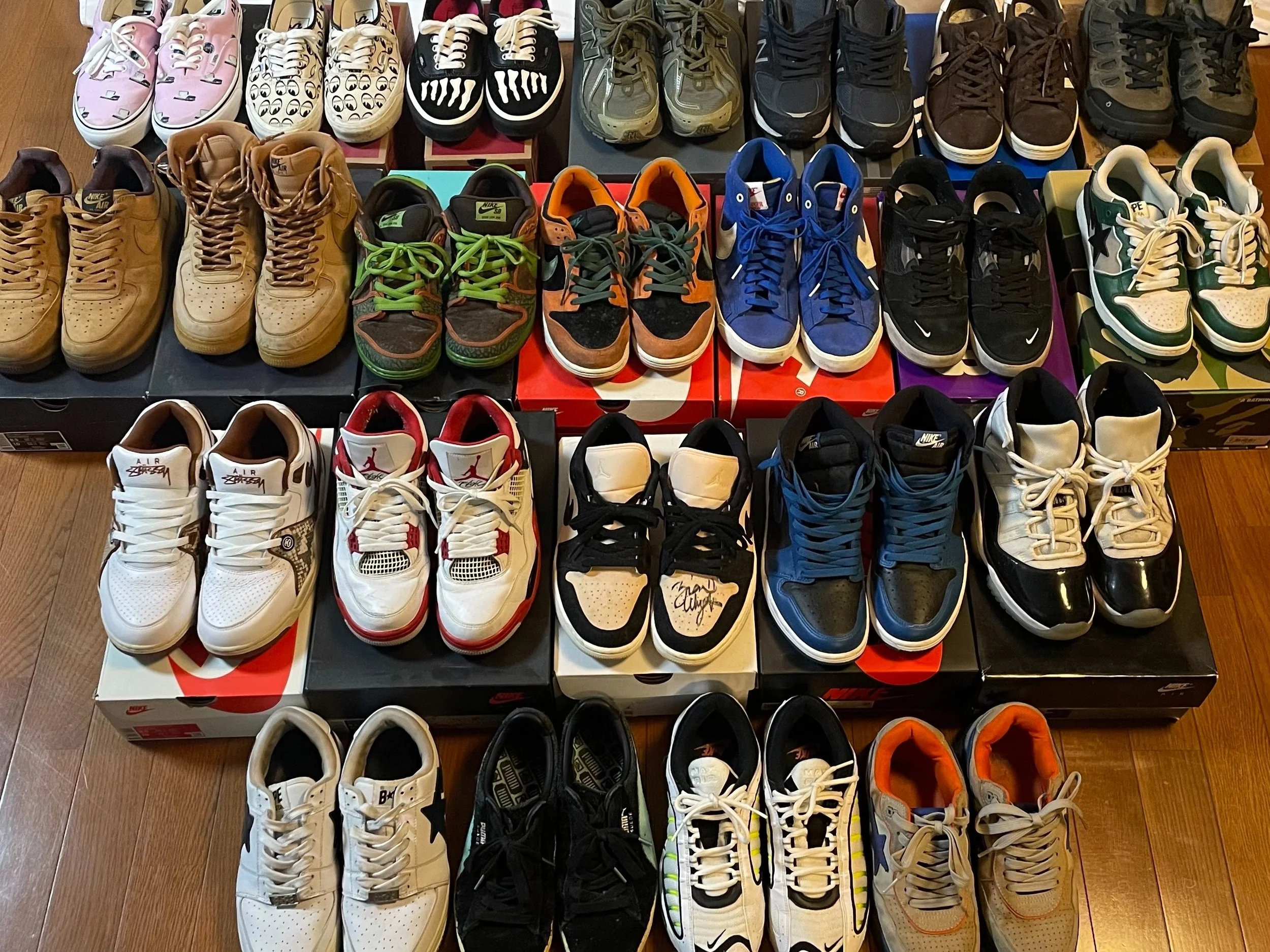 超好きな人に比べたら全然少ないですけど、回らないぐらいはあります(笑)。アディダスとかニューバランスとかも履きますし、それこそバンズも持ってますけど、やっぱりナイキが一番多いです。ヒップホップアーティストとのコラボも多いし、SBとかのラインもすごい好きで。